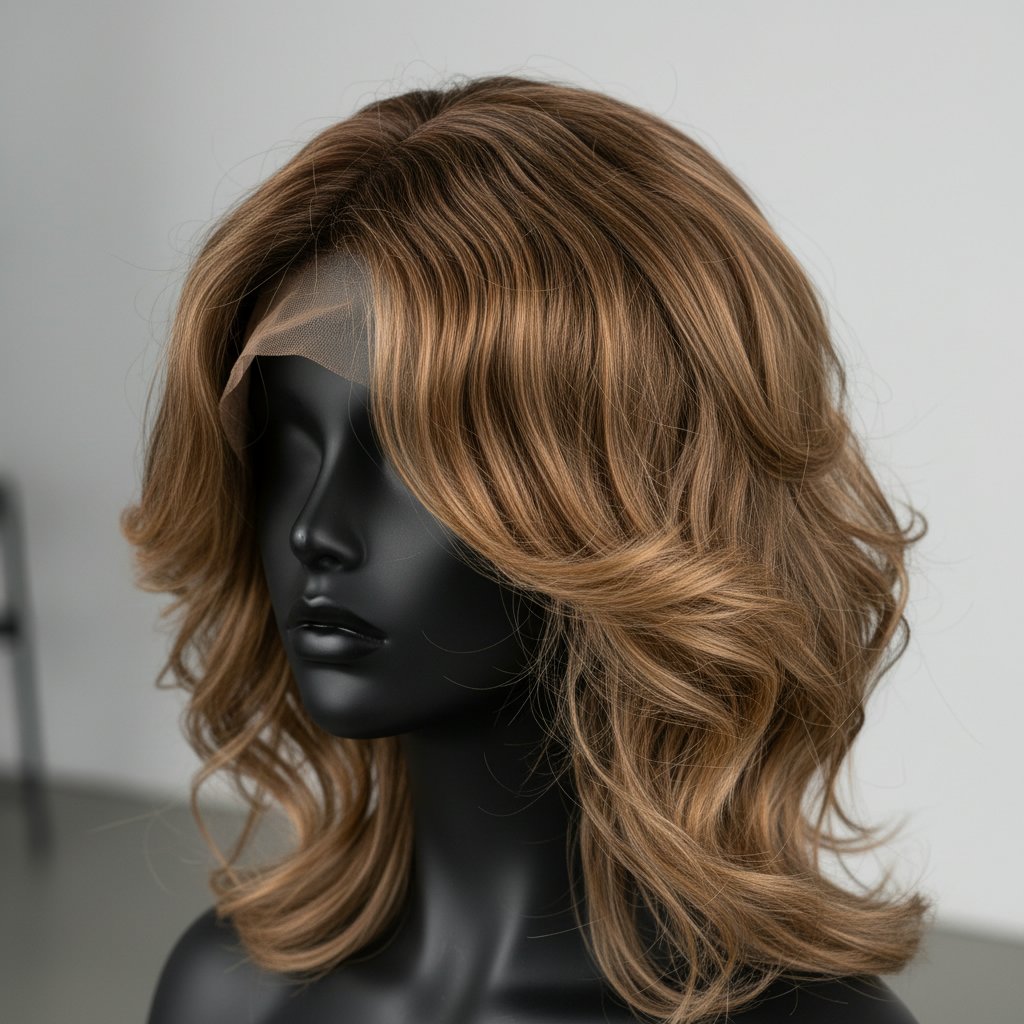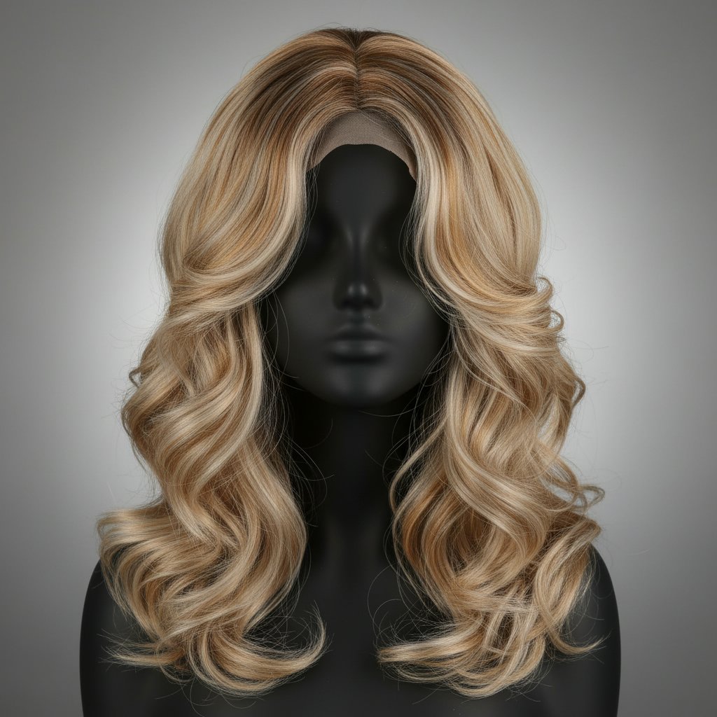 Discover the dimension and movement of layered waves with a synthetic wig that brings a soft, romantic vibe.