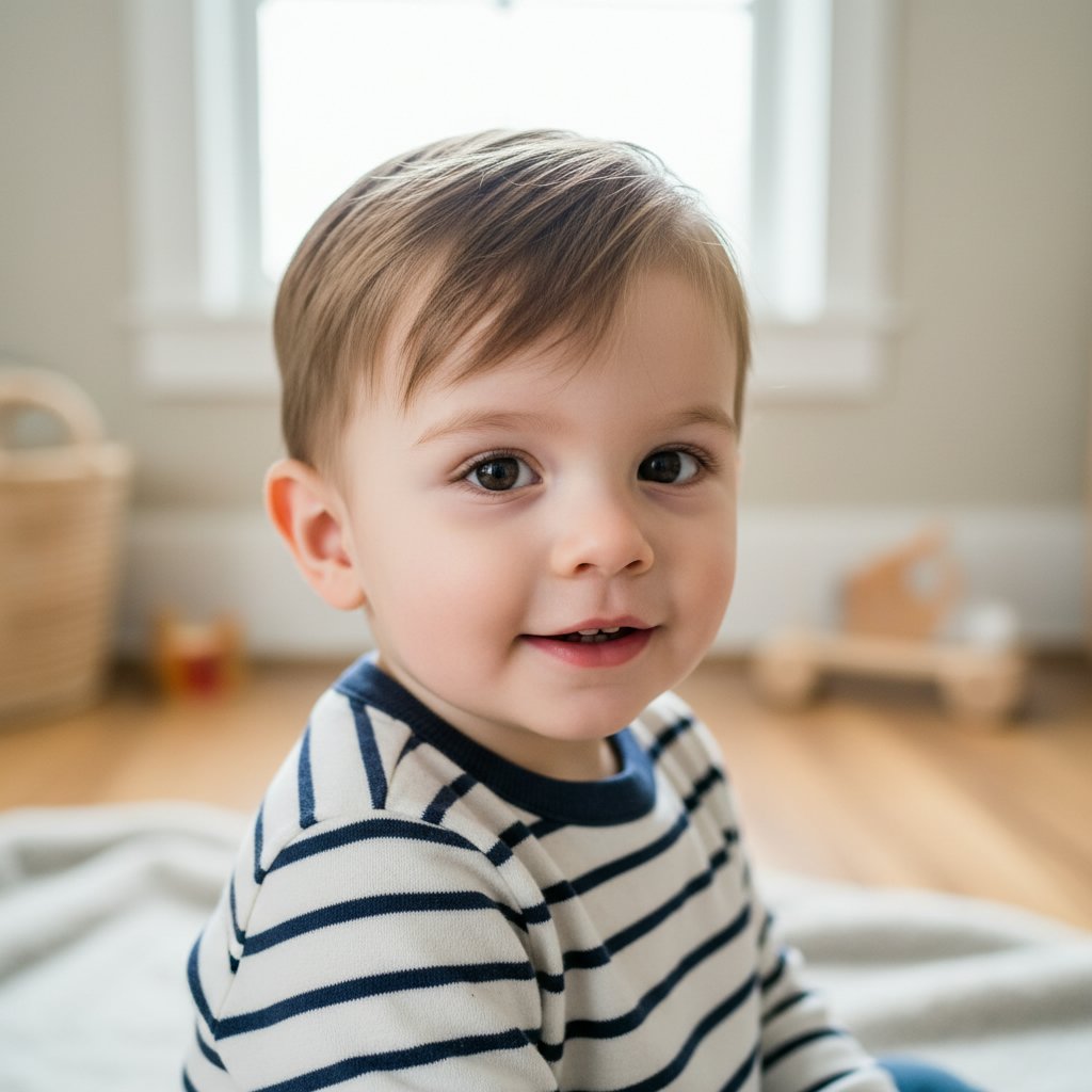 Choosing the right style for your toddler's first haircut can be an emotional journey. Whether you're looking for a simple trim to tidy up those baby locks or a stylish new look that reflects your child's growing personality, this collection aims to inspire. From classic cuts to more modern styles, these haircut options are designed with little ones in mind, ensuring comfort during the haircut and ease of maintenance afterwards. Discover the perfect first haircut that will make for a memorable and photo-worthy milestone.