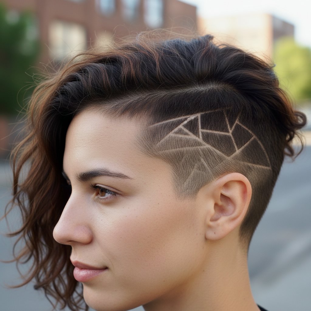 A striking geometric design carved into the shaved side of an undercut, blending art with edginess for a standout look.