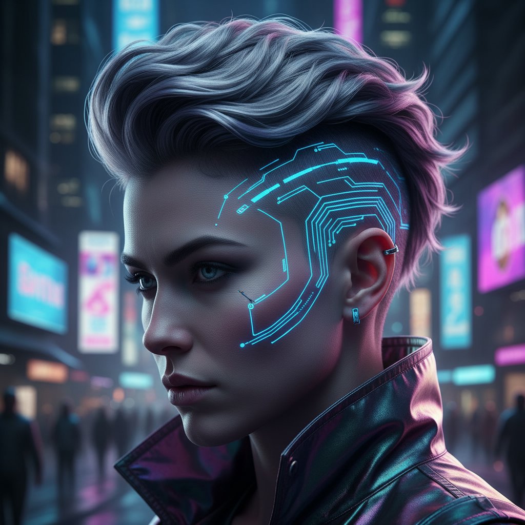 Futuristic lines and patterns create a high-impact visual on the shaved side of this undercut, perfect for the bold at heart.