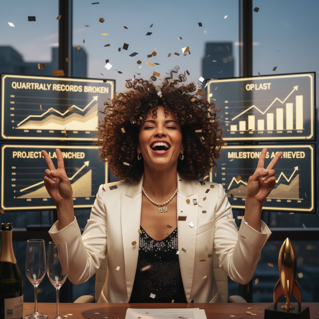 Tight, jubilant curls that bounce with every step, symbolizing the upward spiral of continuous success.