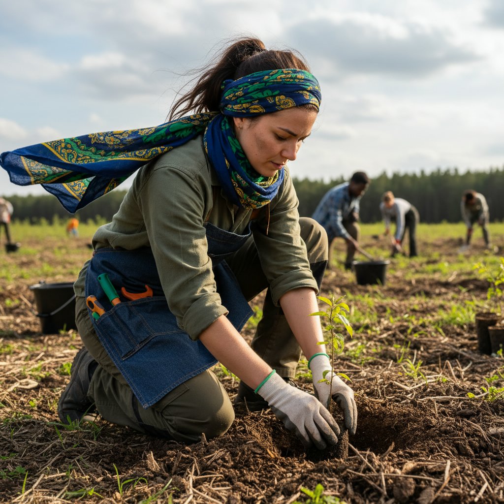 A ponytail, tied back with a colorful scarf, combines functionality with a personal touch, perfect for outdoor activities.