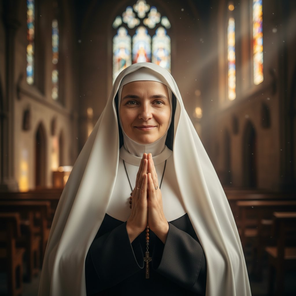 A simple yet profound hairstyle, often hidden beneath a veil, symbolizing the nun's humility and dedication to service.