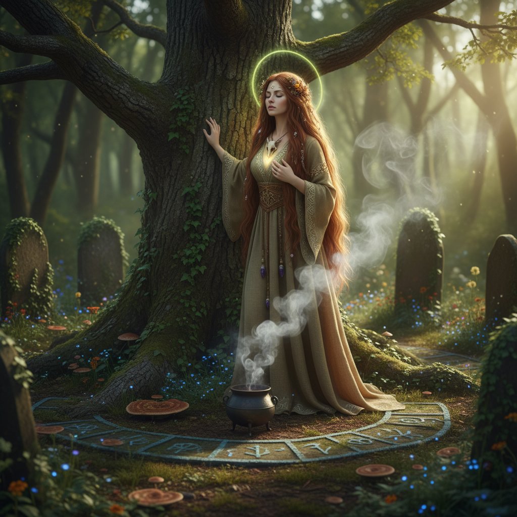Long, free-flowing hair that embraces the natural world and its energies, often seen in pagan and earth-centered spiritual practices.